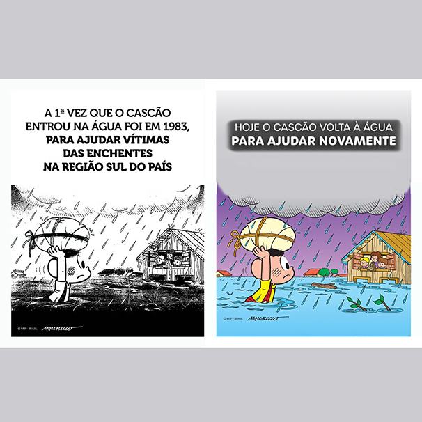 A primeira vez que o Casção entrou na água foi em 1983. Hoje o cascão volta à agua para ajudar novamente